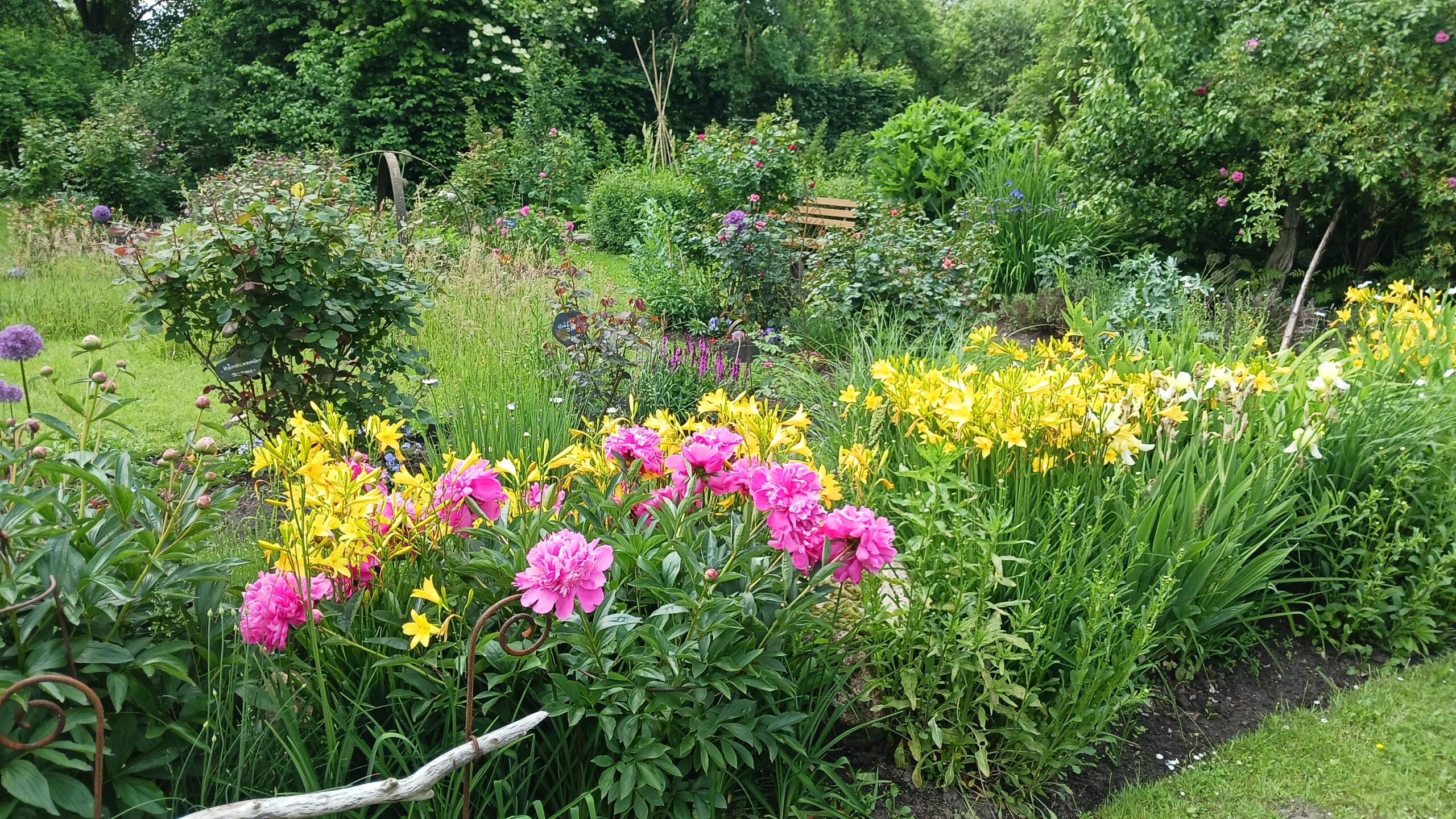 Die ca.200 Rosen – in 65 Sorten- sind eine Besonderheit des Gartens.
